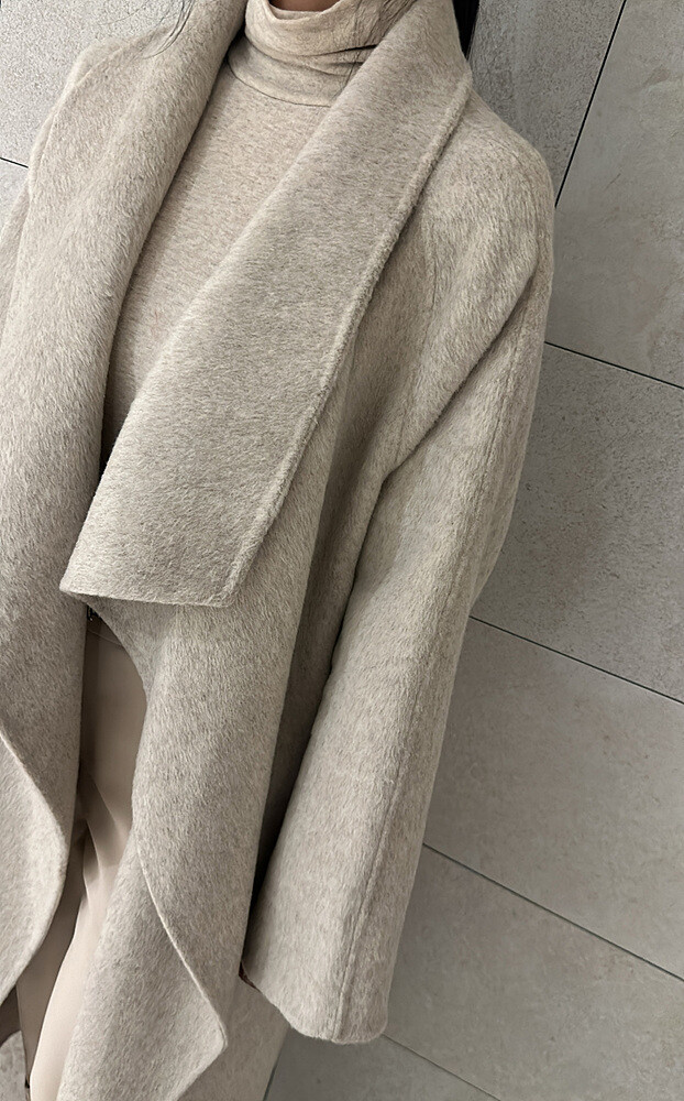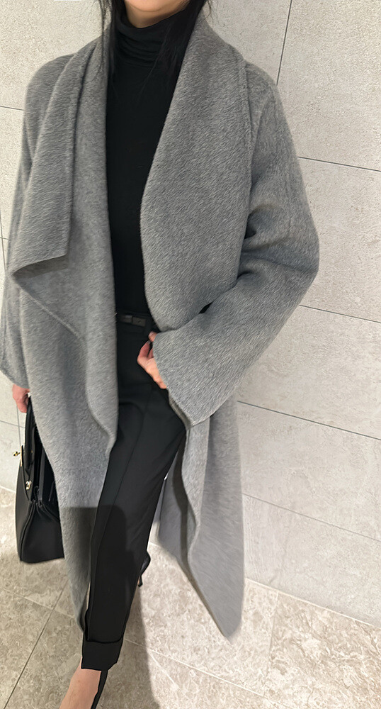 우아한 와이드 숄 칼라 디자인의 핸드메이드 코트입니다.
