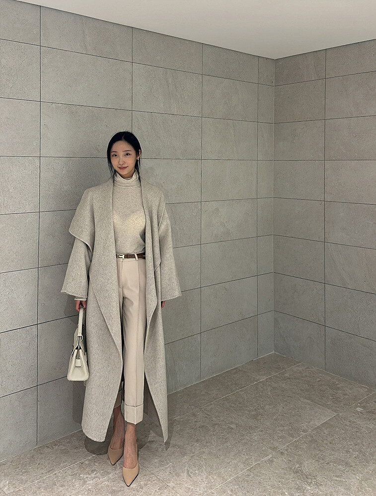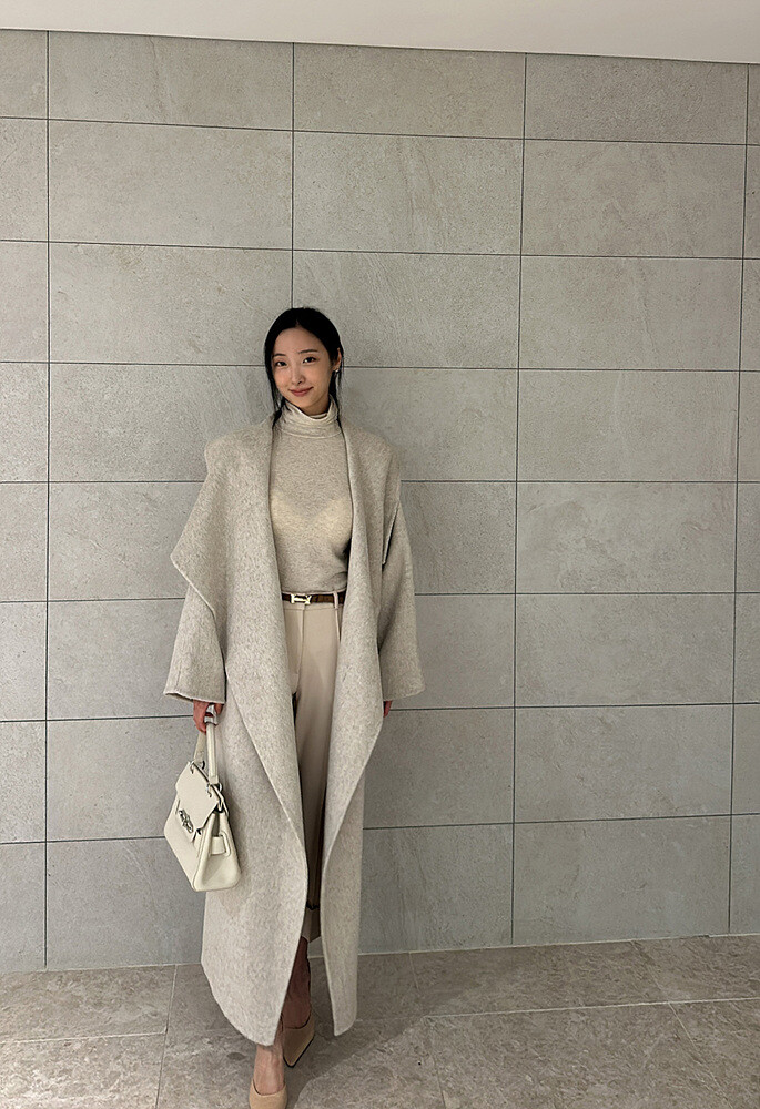 벨보 숄 울 롱코트 2color