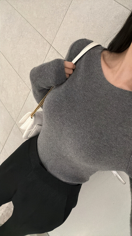 - 쇄골을 살짝 드러내어 과하지 않은 노출감