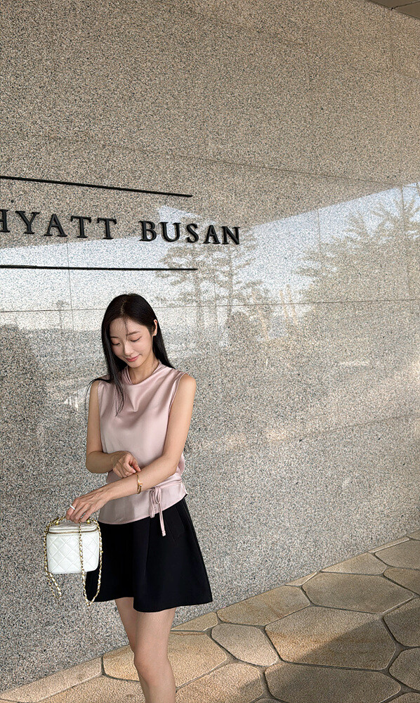 총장(언발) 56-62 어깨 34 가슴 36 허리 47(끈조절) 밑단 49