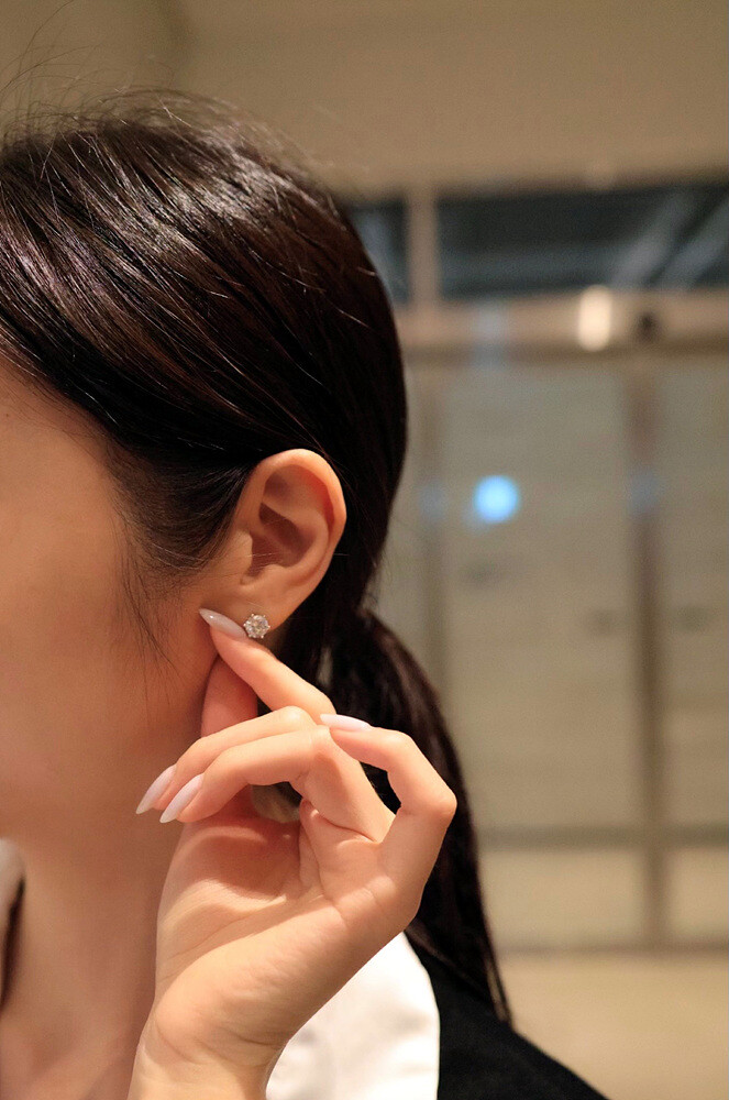 저렴한 큐빅 이어링은 멀리서도 금방 저렴한 티가 나고 반짝임이 덜하더라구요.