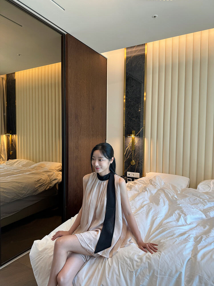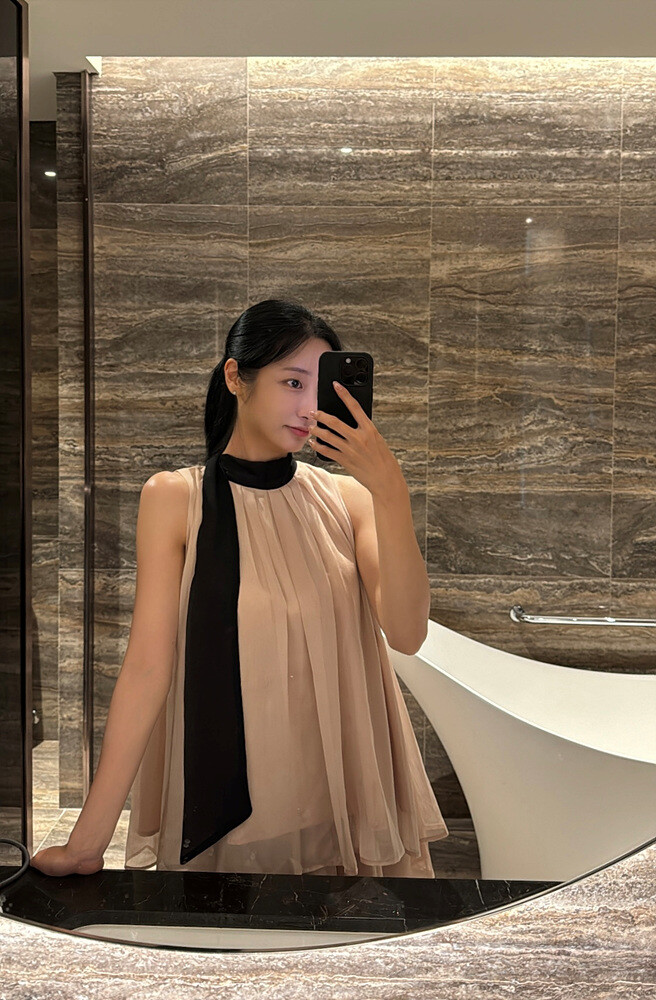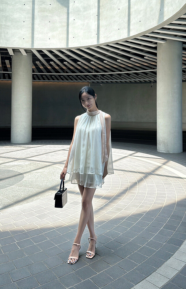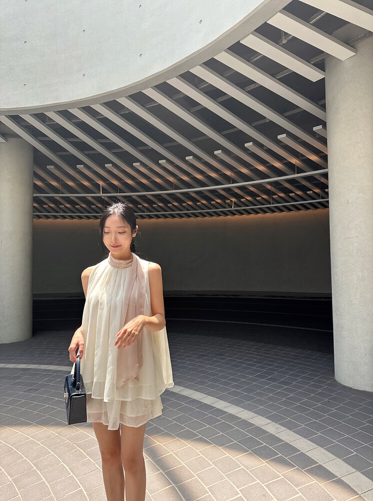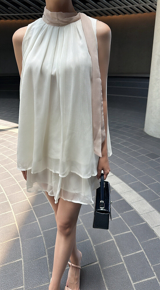 목선과 어깨 라인을 예쁘게 표현해주는 디자인이 특징이며,