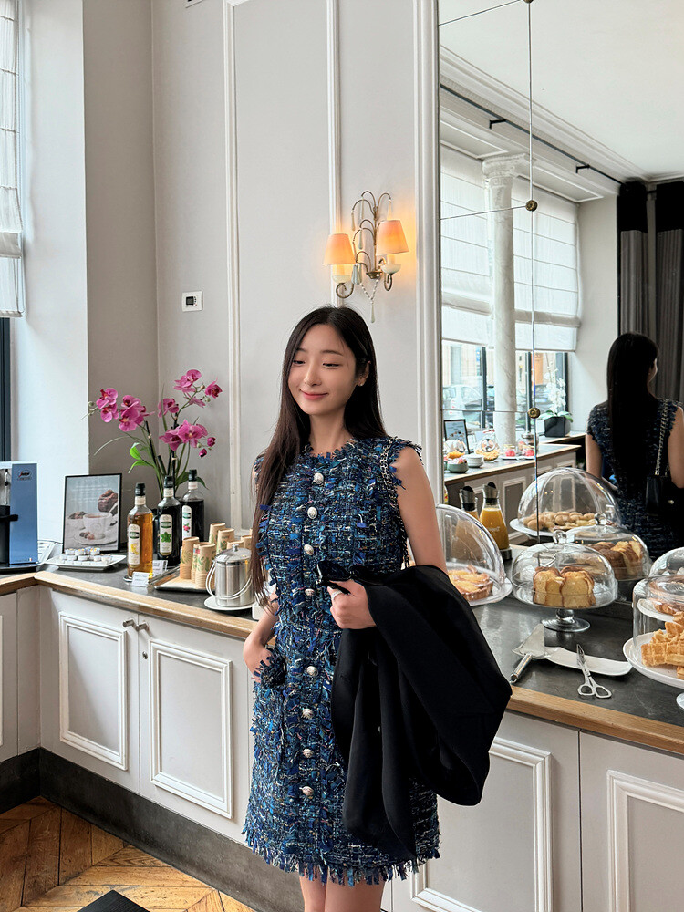 화려하면서도 단정하게 고급스러운 트위드 원피스입니다.