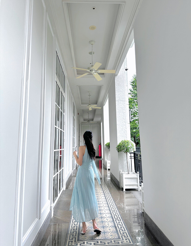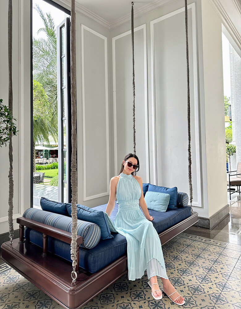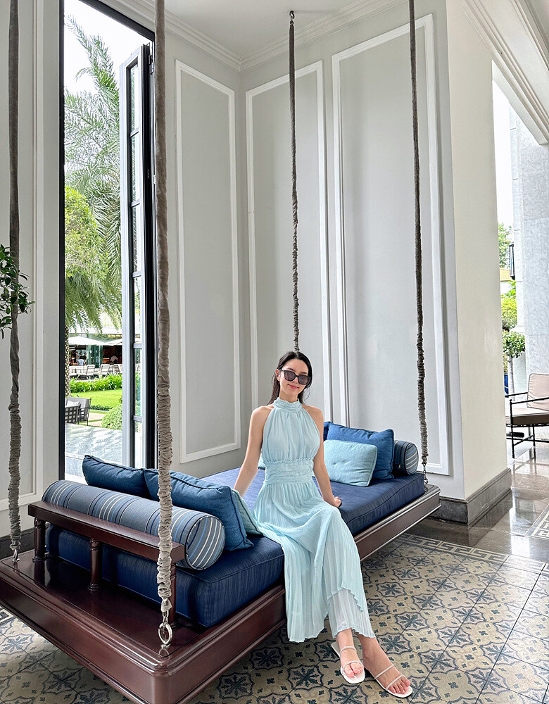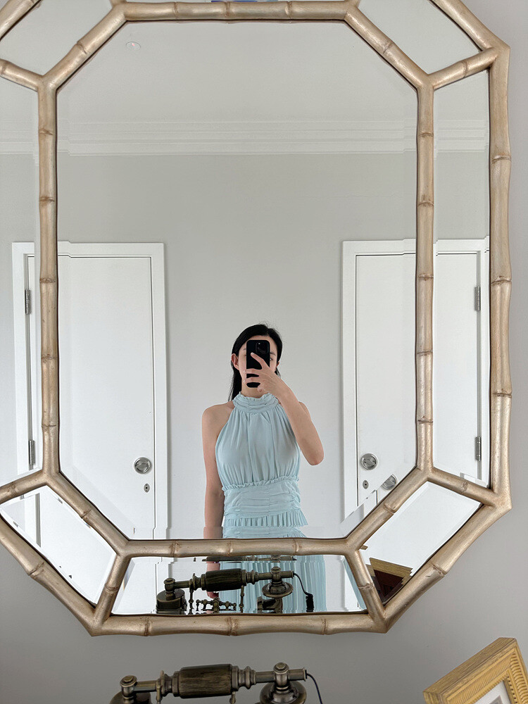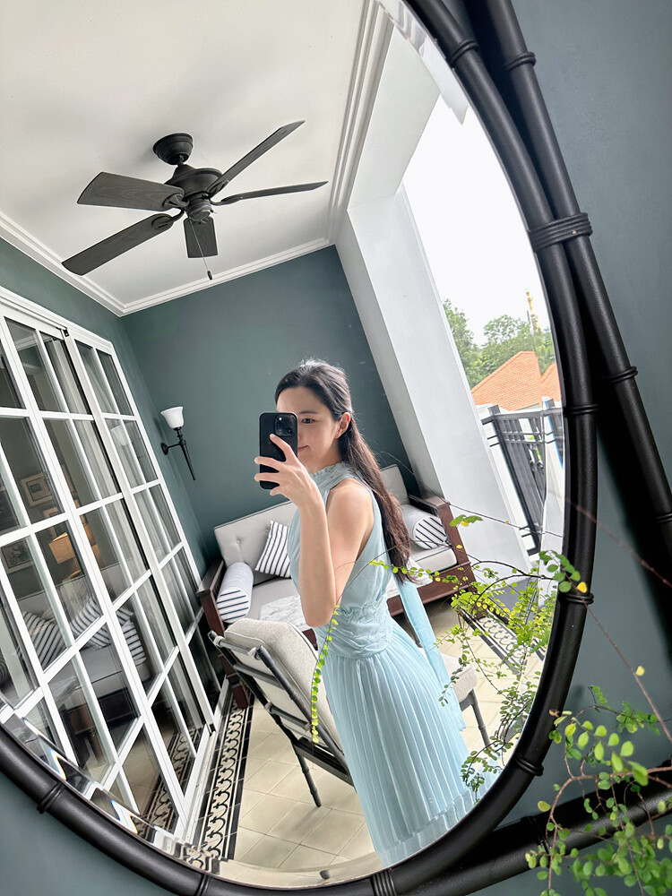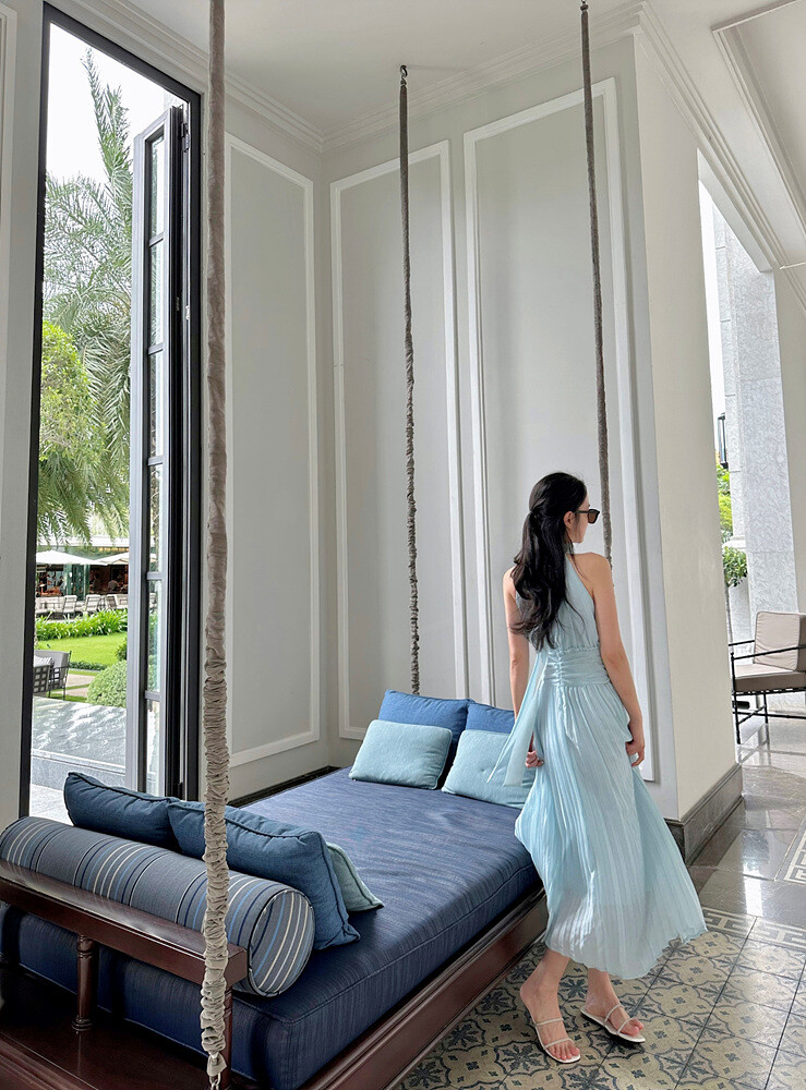 높은허리선 라인에 원단을 아낌 없이 사용하여 완성한