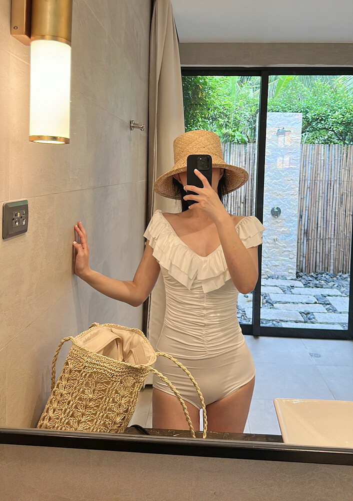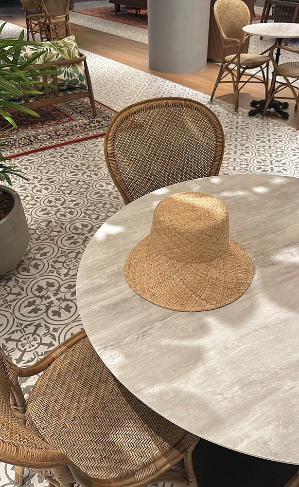 얼굴이 작아 보이는 밀짚모자입니다.
