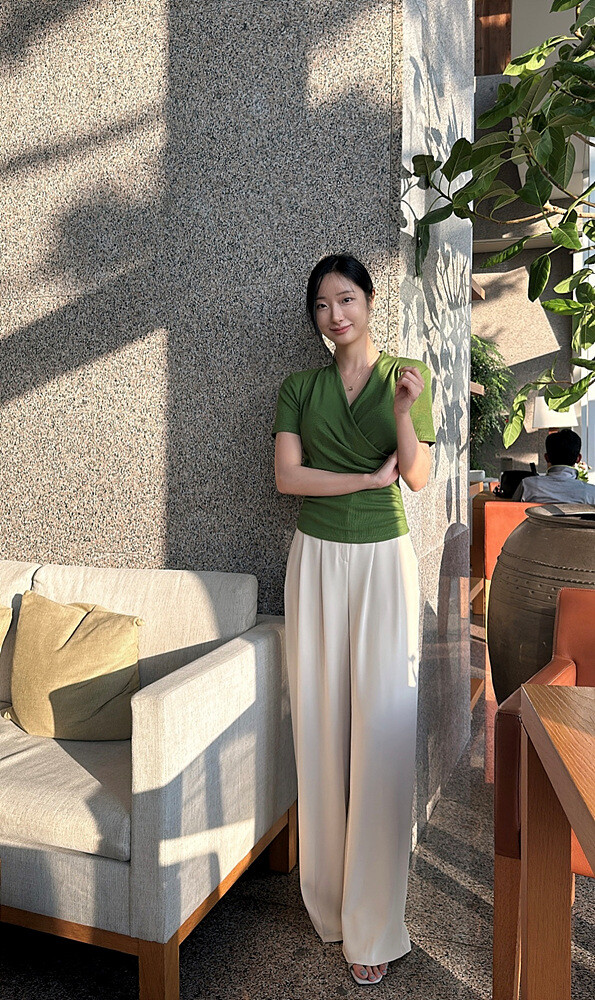 바디라인을 따라 슬림하게 핏 되는 실루엣을 연출하며