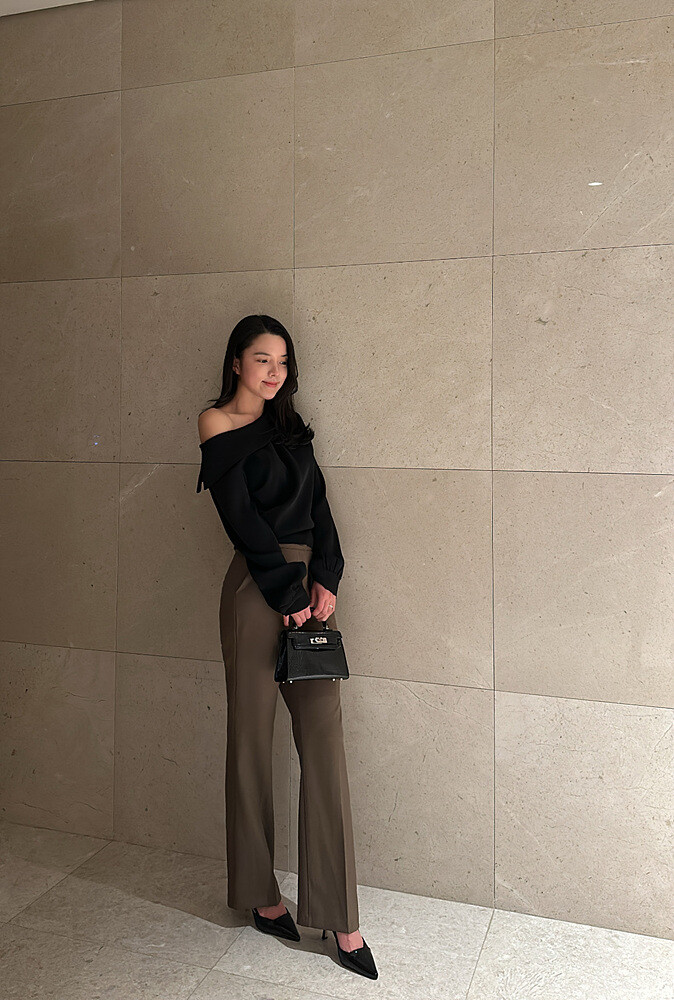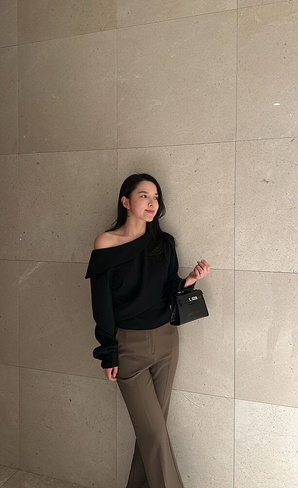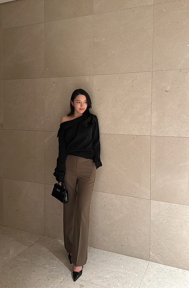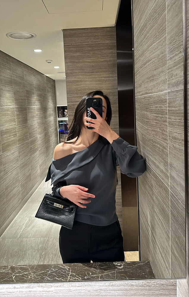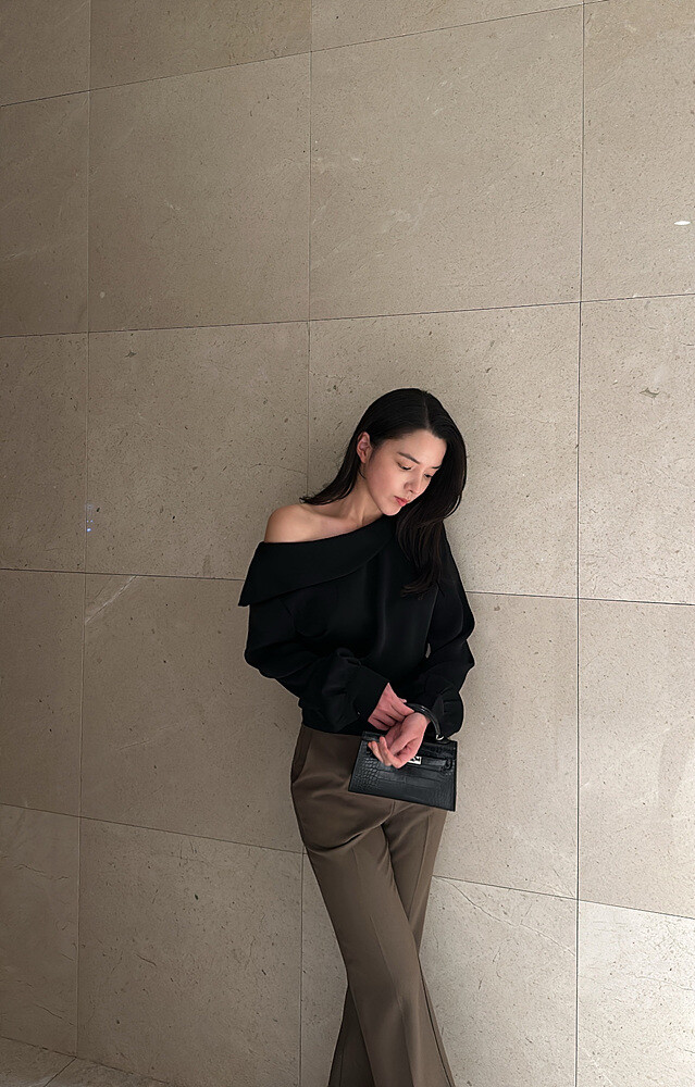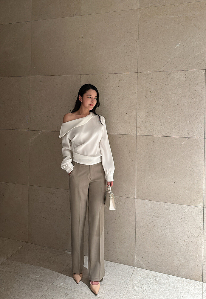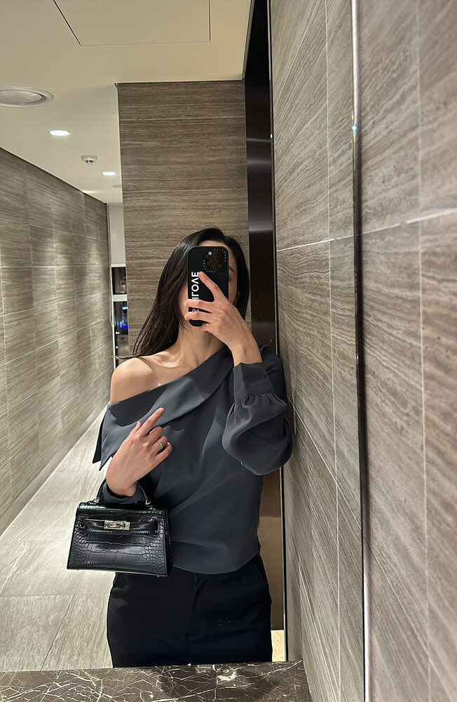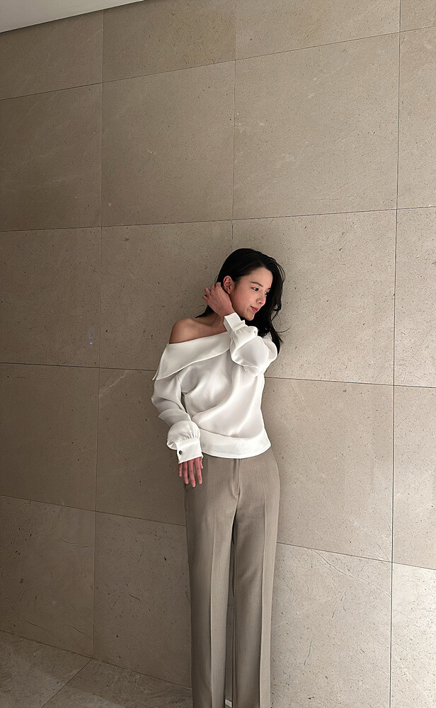 아름다운 실루엣의 오프숄더 블라우스입니다.