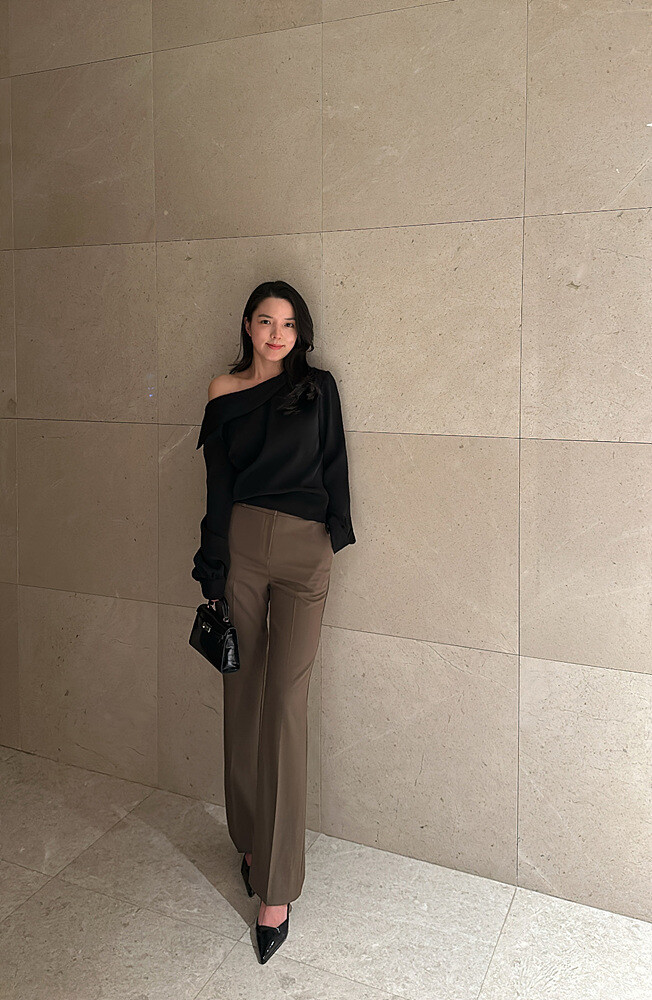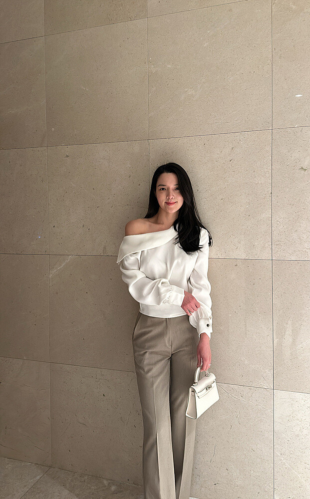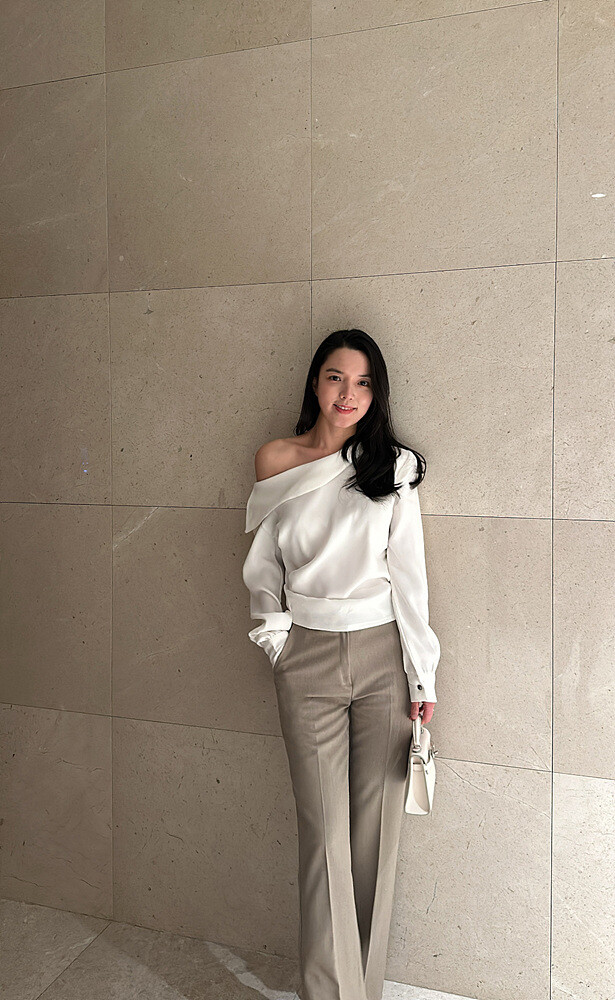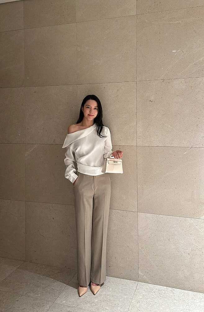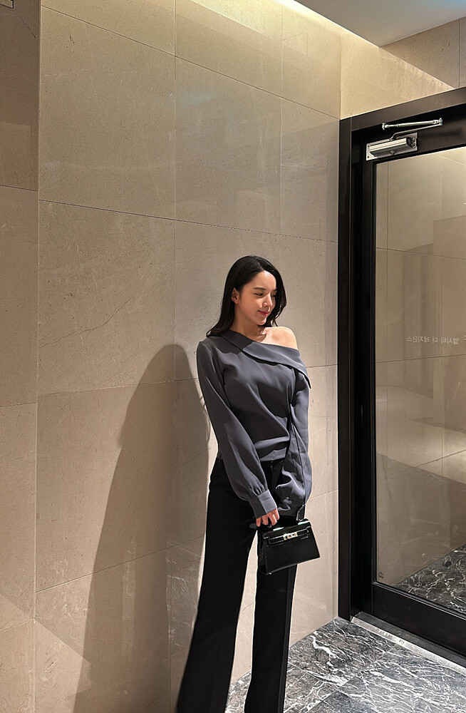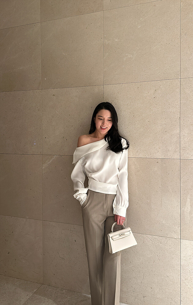 -우아하게 한쪽 어깨선이 드러나는 실루엣