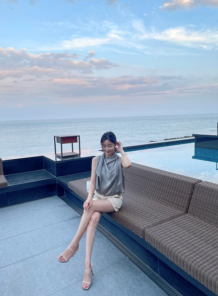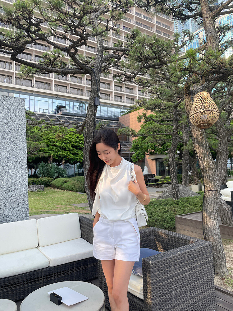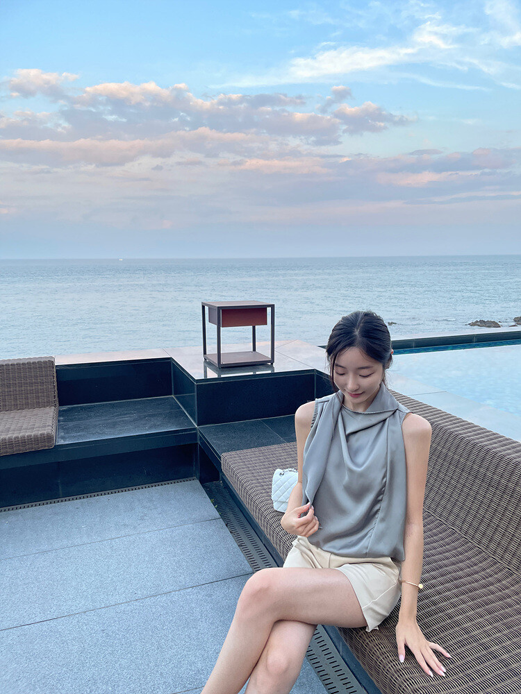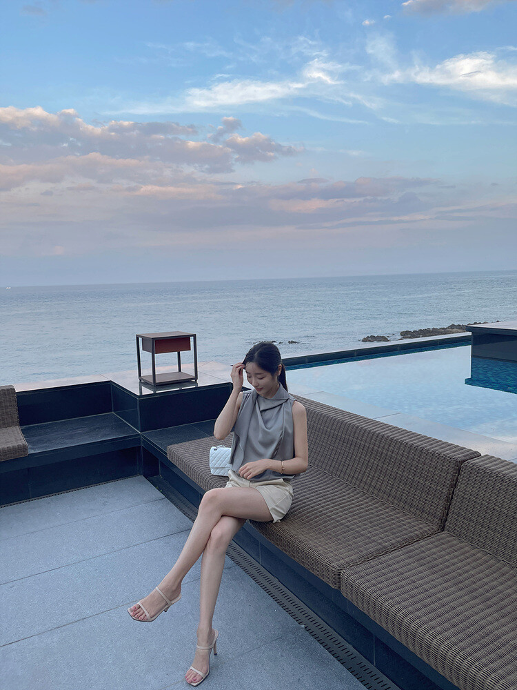 특유의 우아하고 도회적인 무드가 매력적인 슬리브리스 탑입니다.