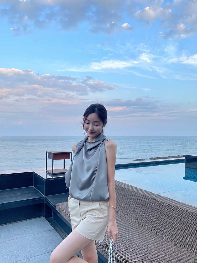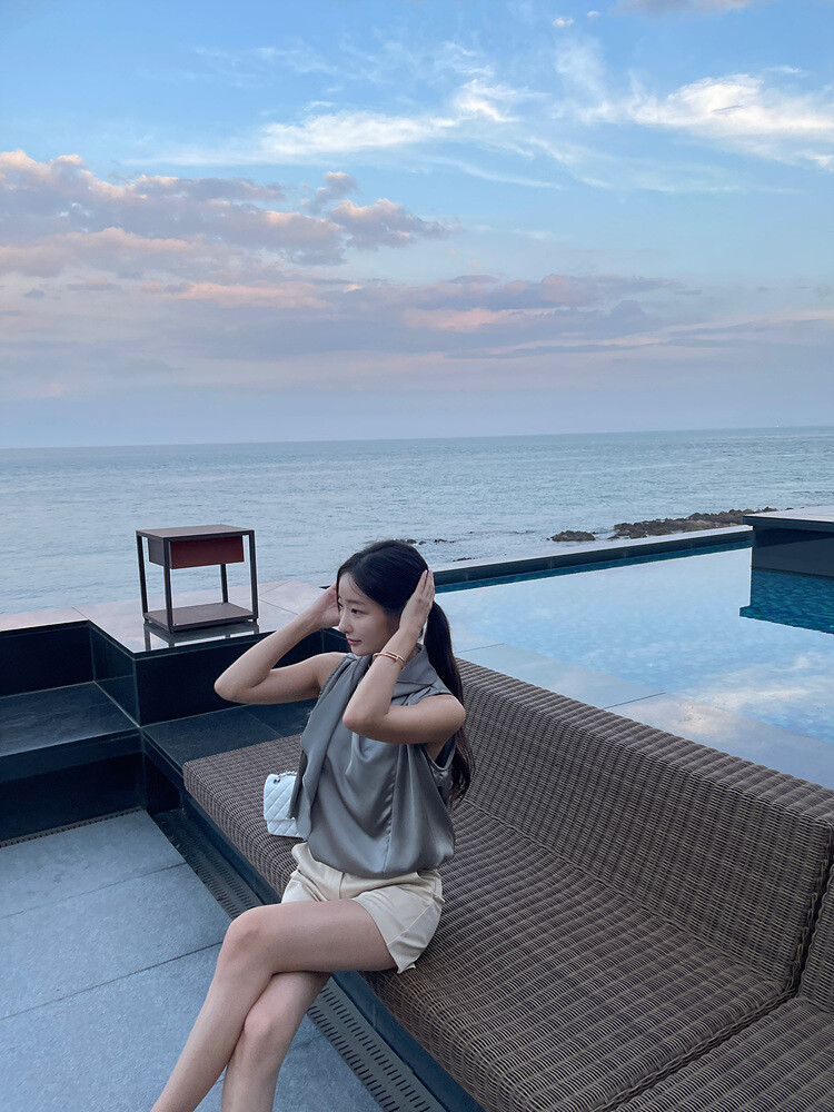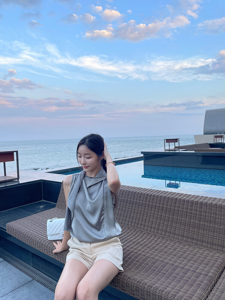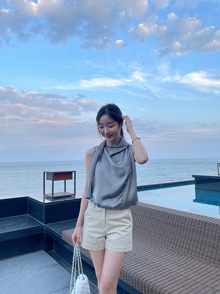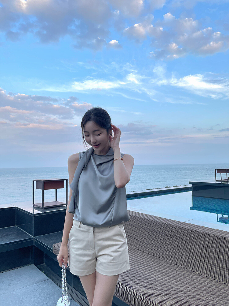 특유의 우아하고 도회적인 무드가 매력적인 슬리브리스 탑입니다.