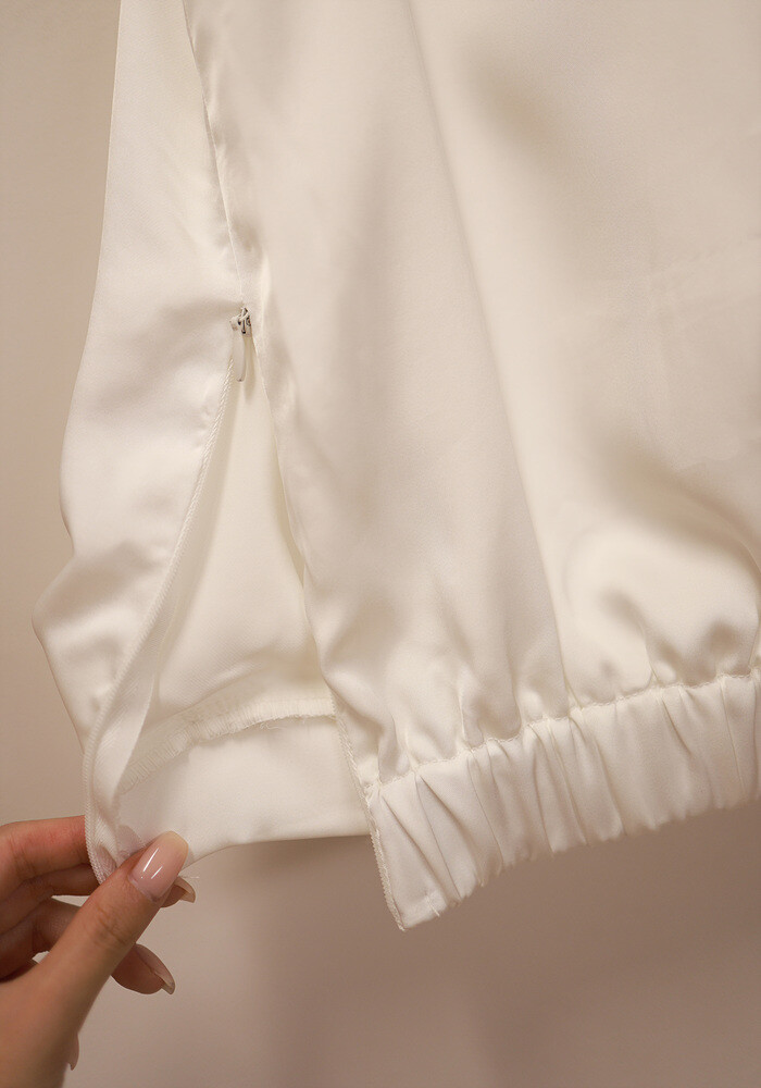 넥라인에서 흐르는 타이 디테일이 특징으로