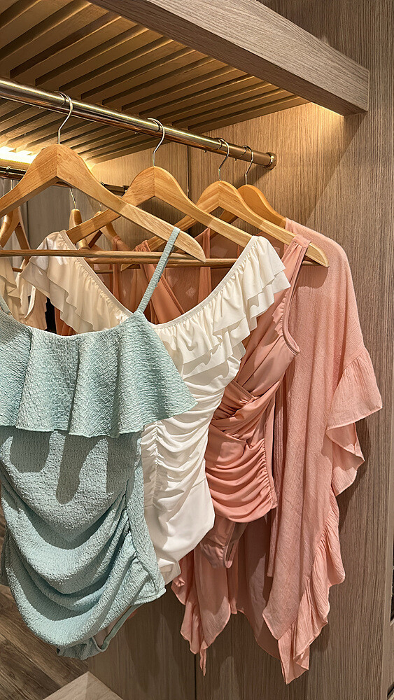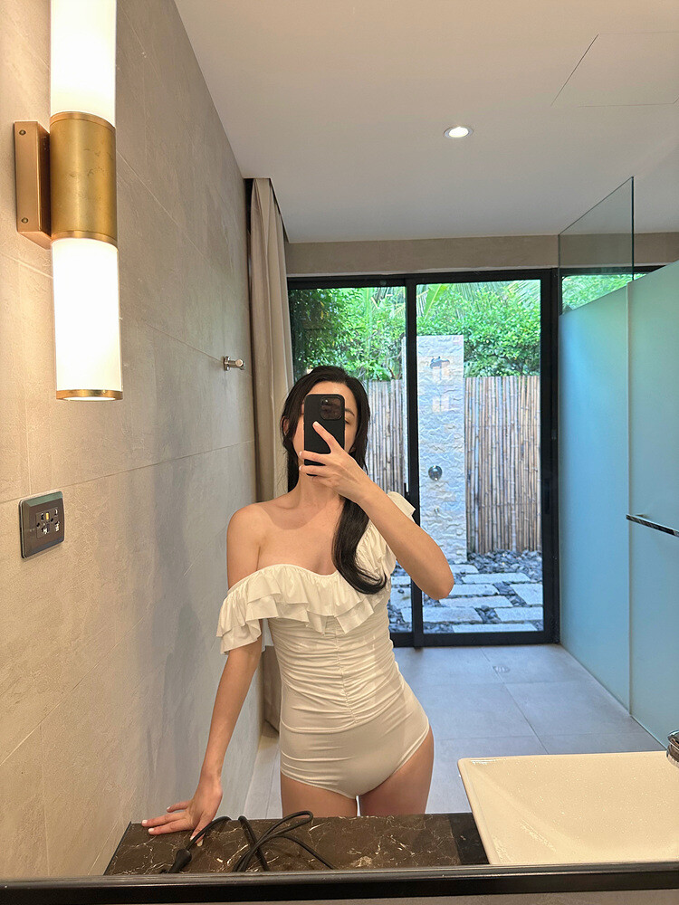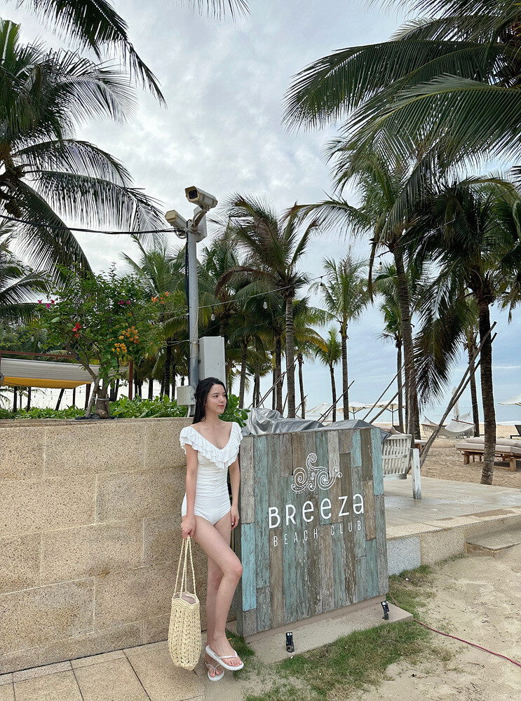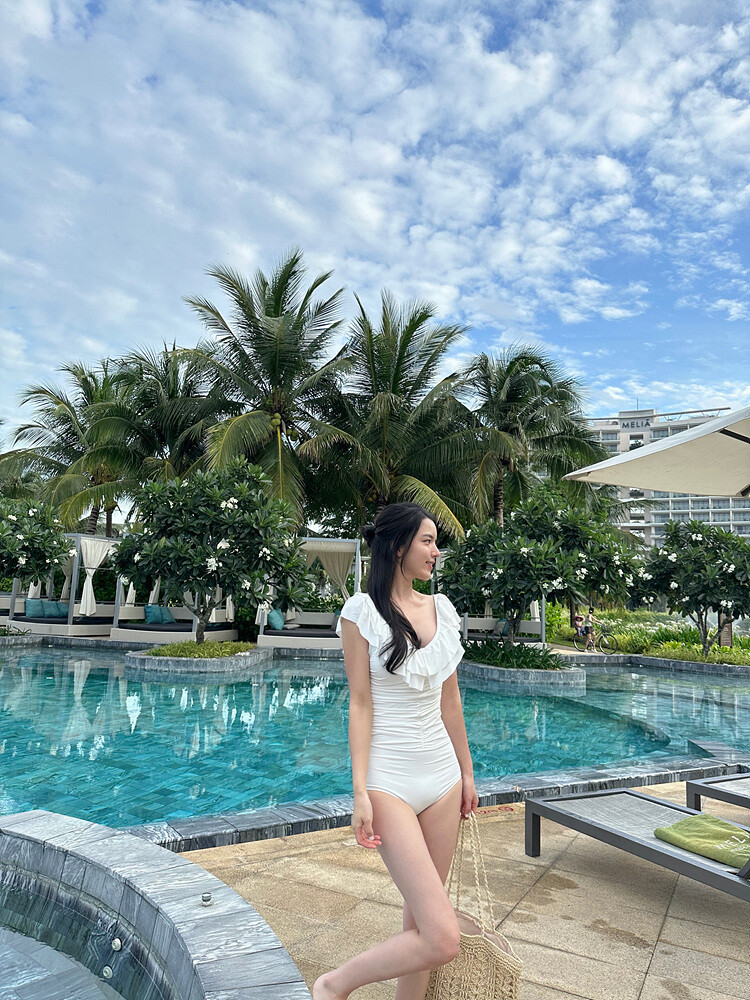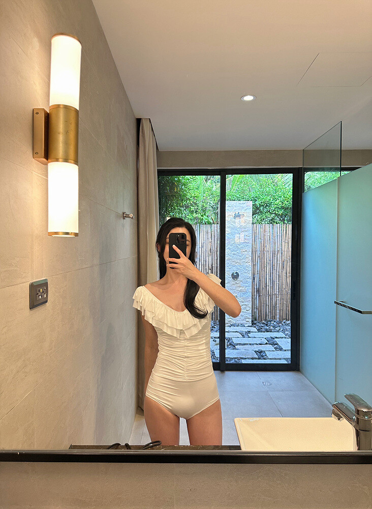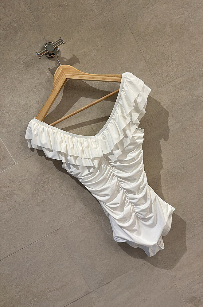 가슴부분 프릴은 자연스러운 볼륨감을 만들어주며