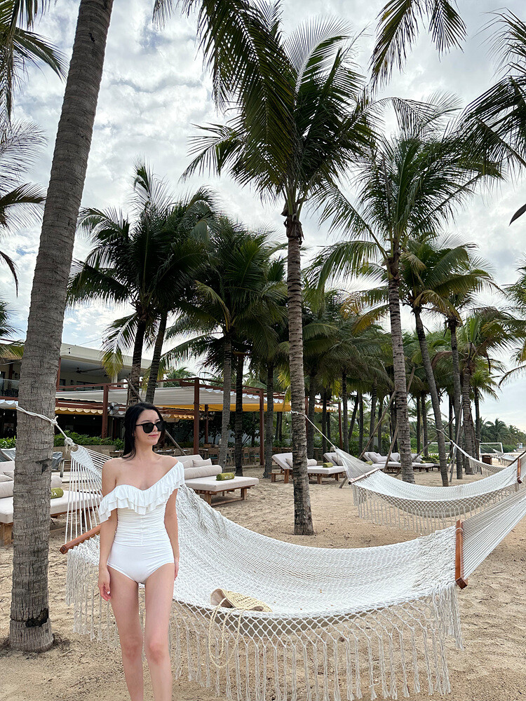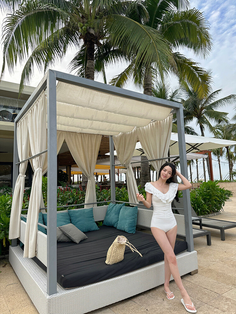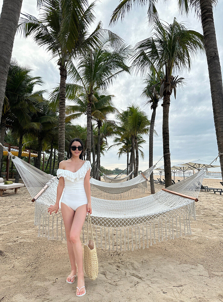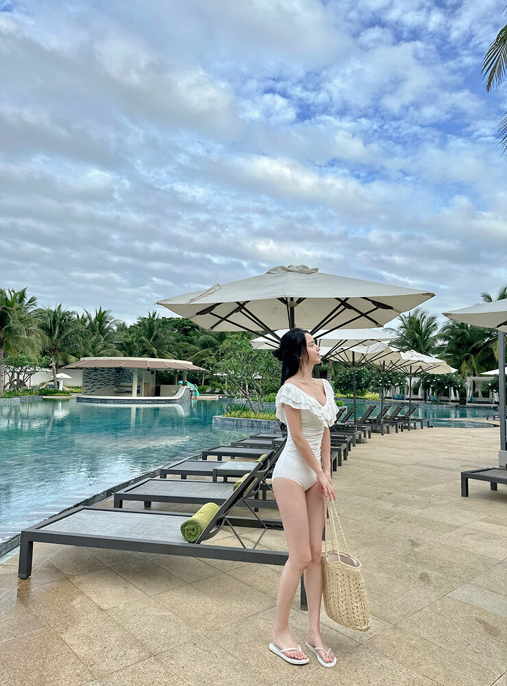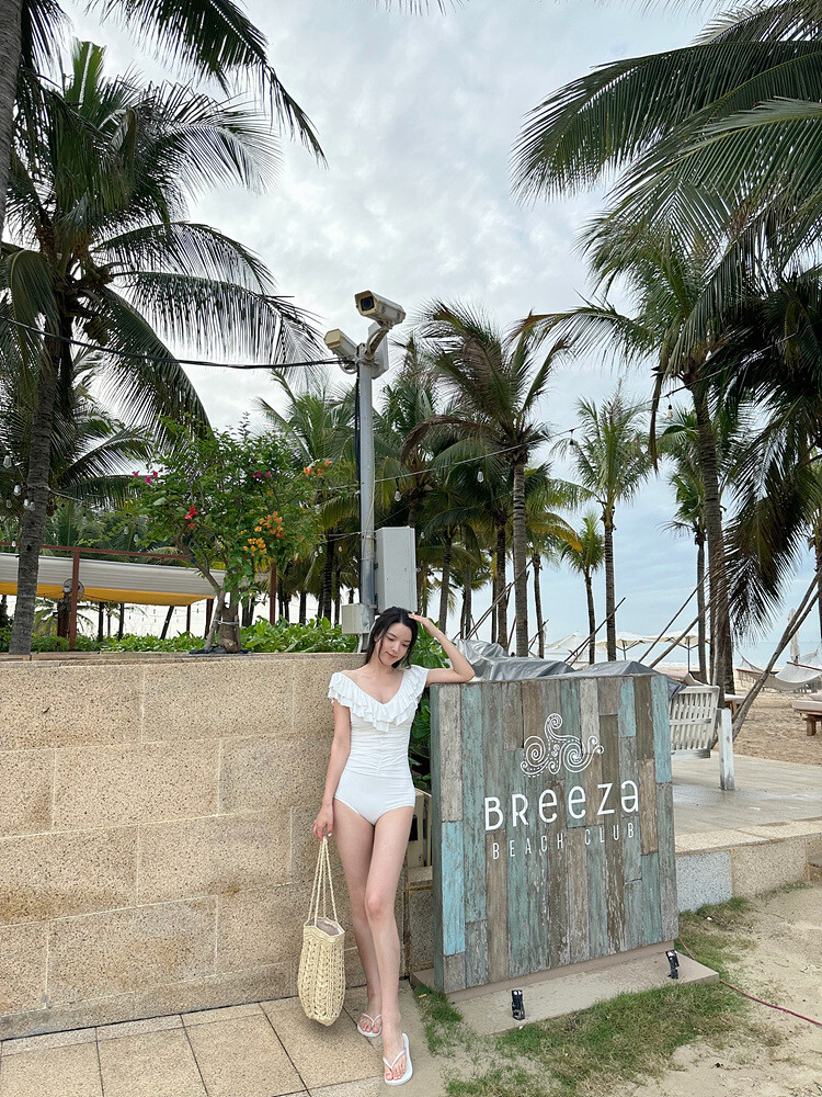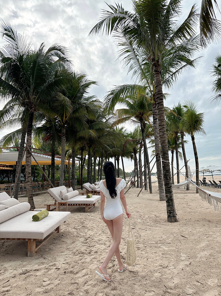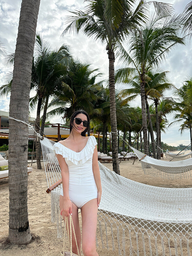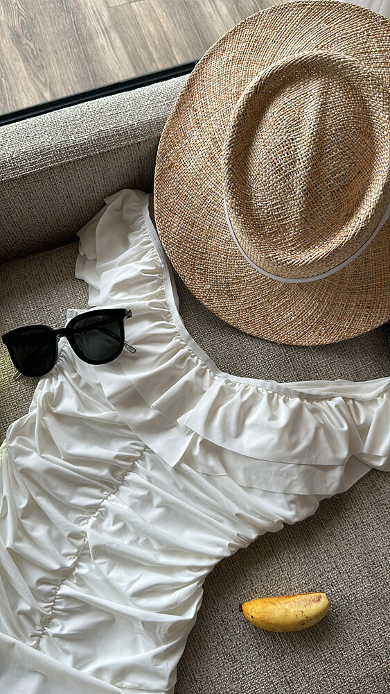 살짝 내려오는 프릴이 어깨와 팔뚝살 커버에도 탁월해요.