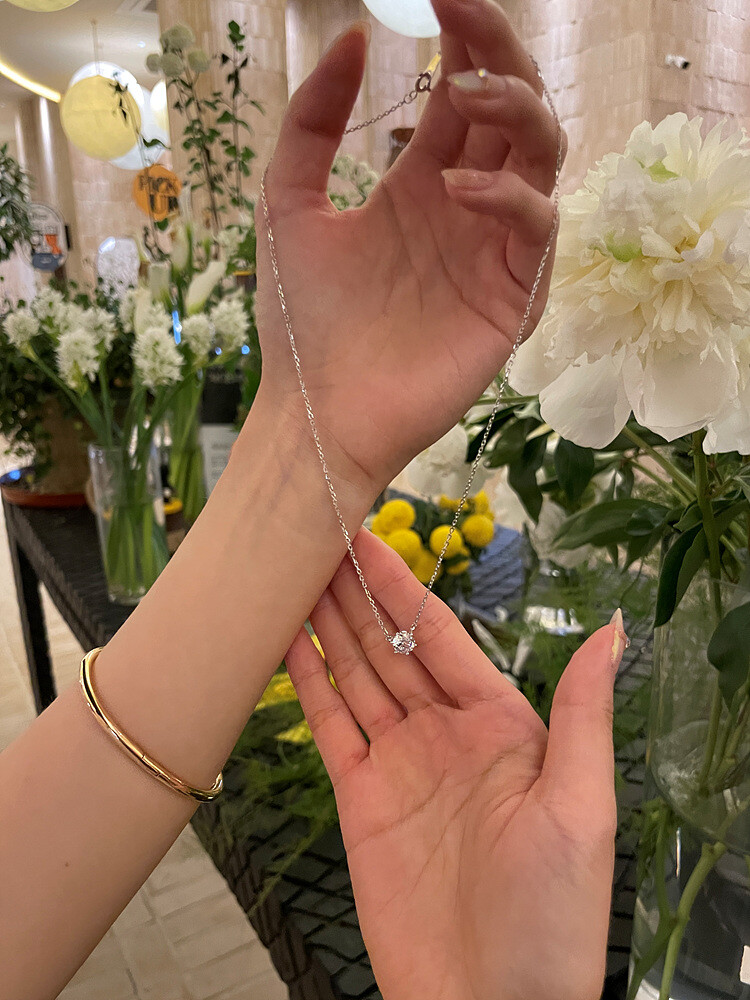 우아한 광택과 반짝거림이 아름다운 1캐럿 목걸이에요.