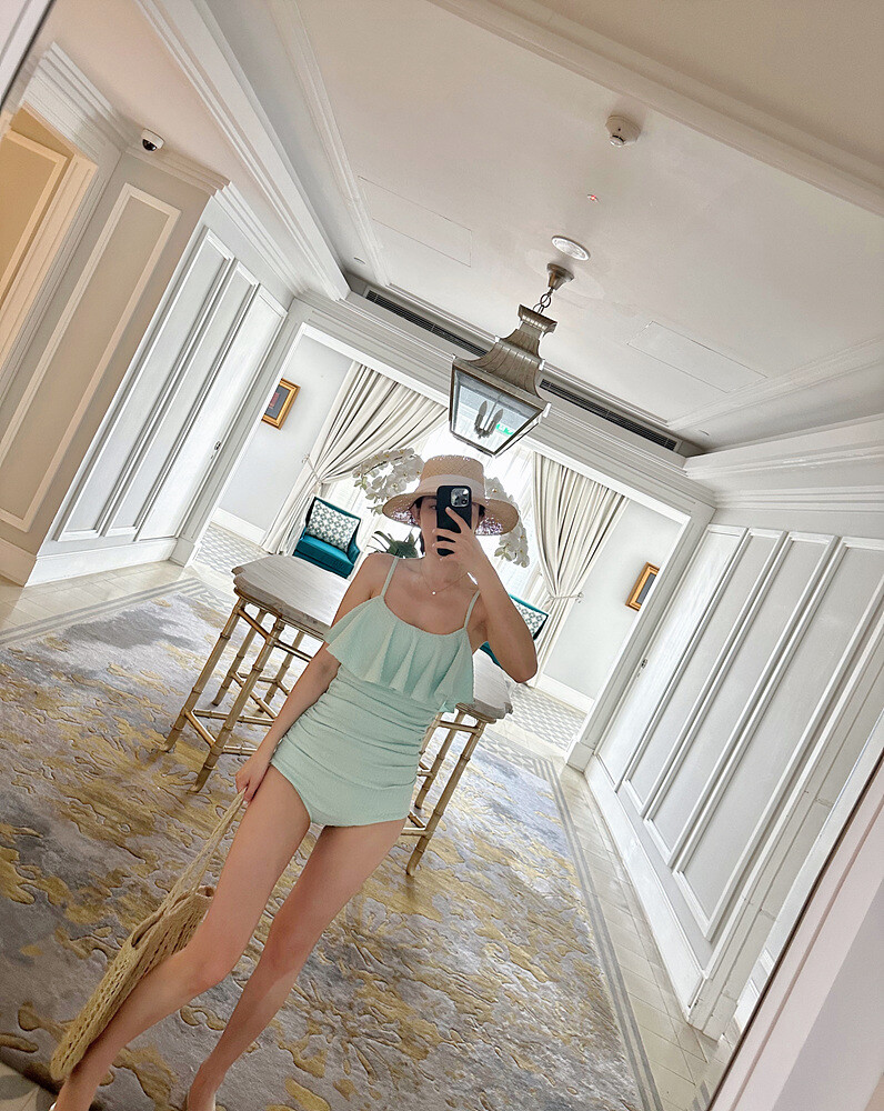 가벼운 스모크 재질로 실물이 너무나 예쁜 모노키니랍니다.